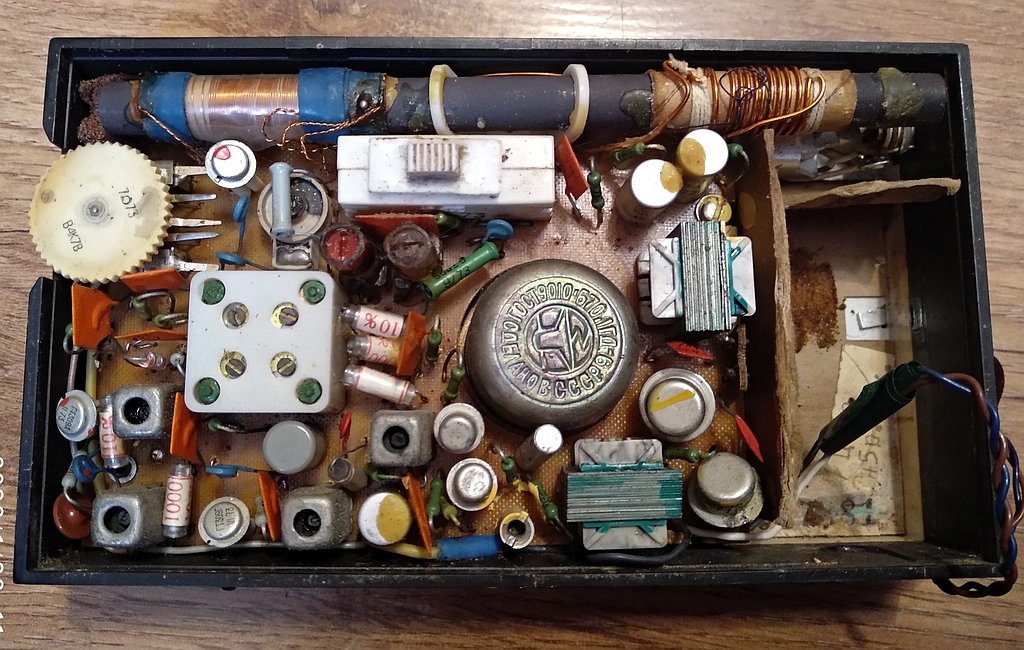 Megadták a módját kérem .Lineáris skála , nagy áttételekkel,és a jobbra lent az a forgatógomb az a finomhangolás . És mindezt egy zsebrádióban....igaz nagy orosz zsebhez van méretezve , de úgyis.. Ennyi alkatrészből Taiwanban akkortájt két rádiót raktak össze :-)